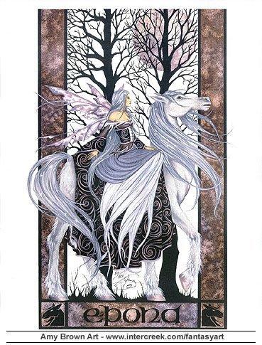 Na religião galo-romana, Epona era uma protetora de cavalos, burros, e mulas. Era particularmente uma deusa da fertilidade, como mostrado pelos atributos dela de uma patera, cornucópia, orelhas de grânulos e a presença de potros em alguma esculturas sugerindo que a deusa e seus cavalos eram líderes de alma na condução ao além-túmulo, em paralelo aos Rhiannon dos Mabinogion. De forma incomum para uma deidade céltica, a maioria das quais eram associadas a localidades específicas, o culto de Epona, "basicamente a única divindade céltica cultuada na própria Roma," foi difundido no Império Romano entre o primeiro e terceiro séculos D.C..